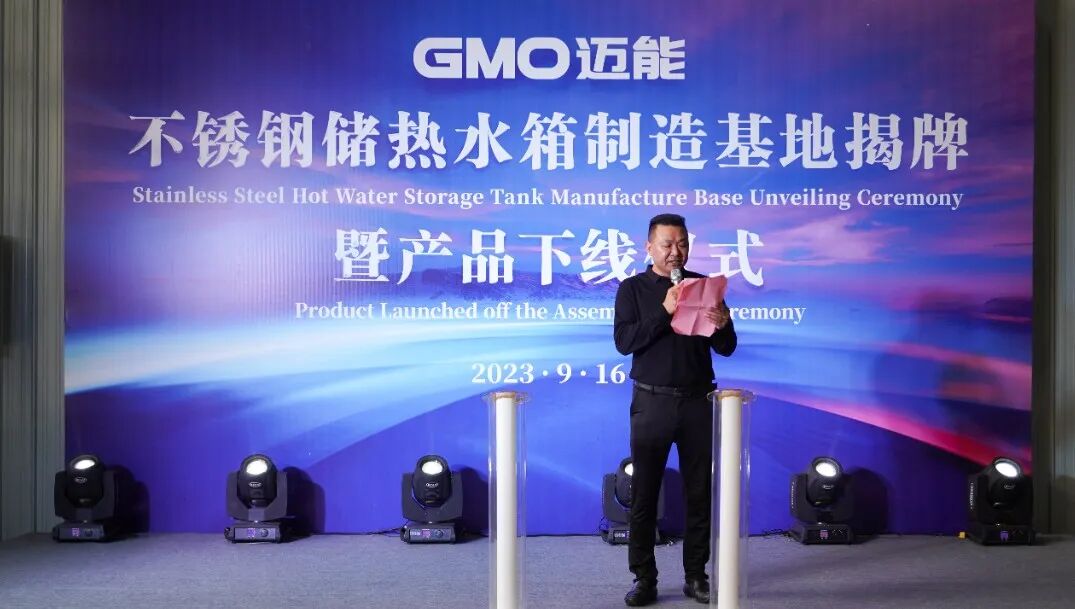 2023年9月16日GMO邁能不銹鋼儲熱水箱制造基地揭牌暨產品下線儀式在生產基地成功舉行,GMO邁能總經理朱慶國、副總經理朱紹正、項目組團隊及相關部門成員參加本次活動。